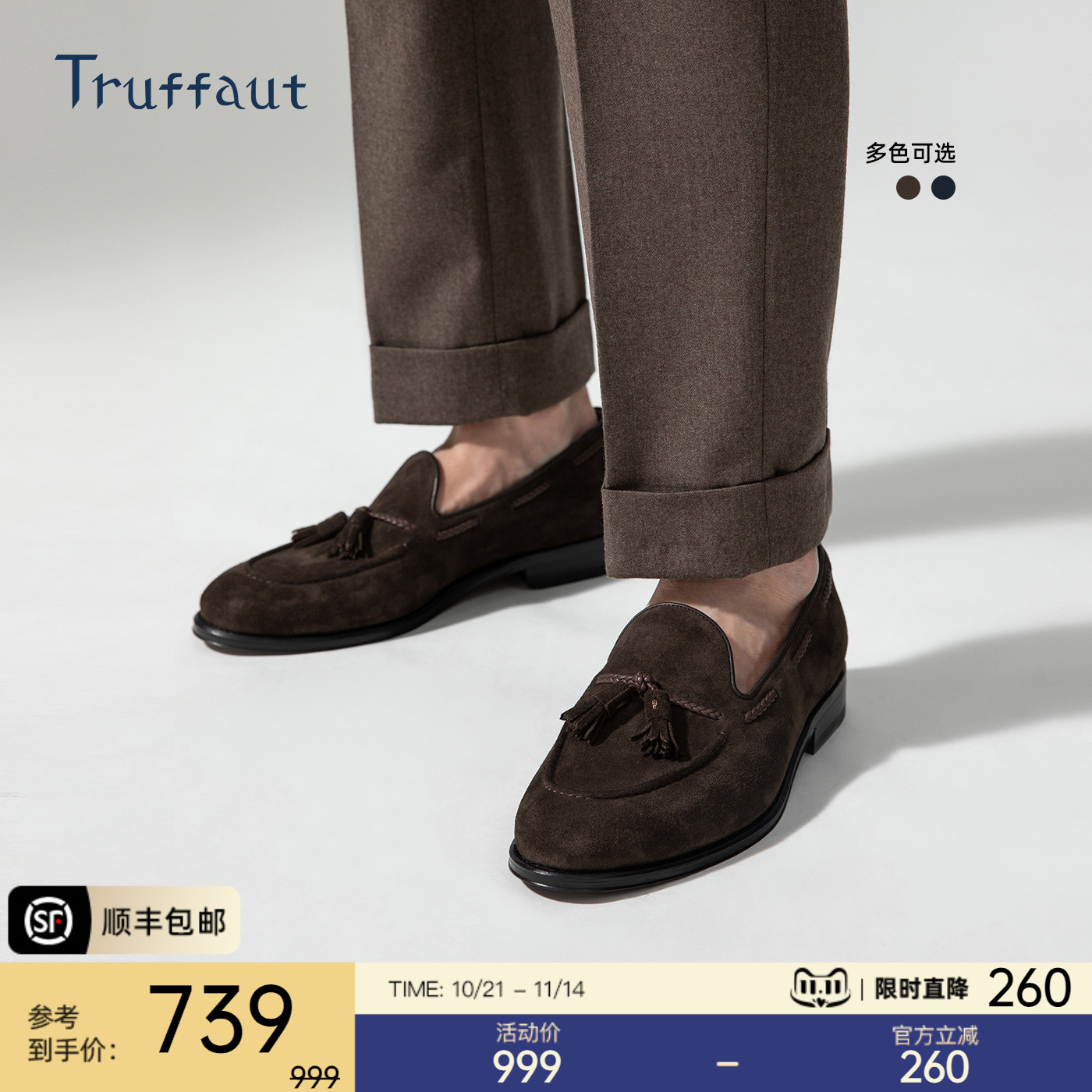 Truffaut高端手工流苏乐福鞋男商务休闲皮鞋英伦反绒皮一脚蹬男鞋