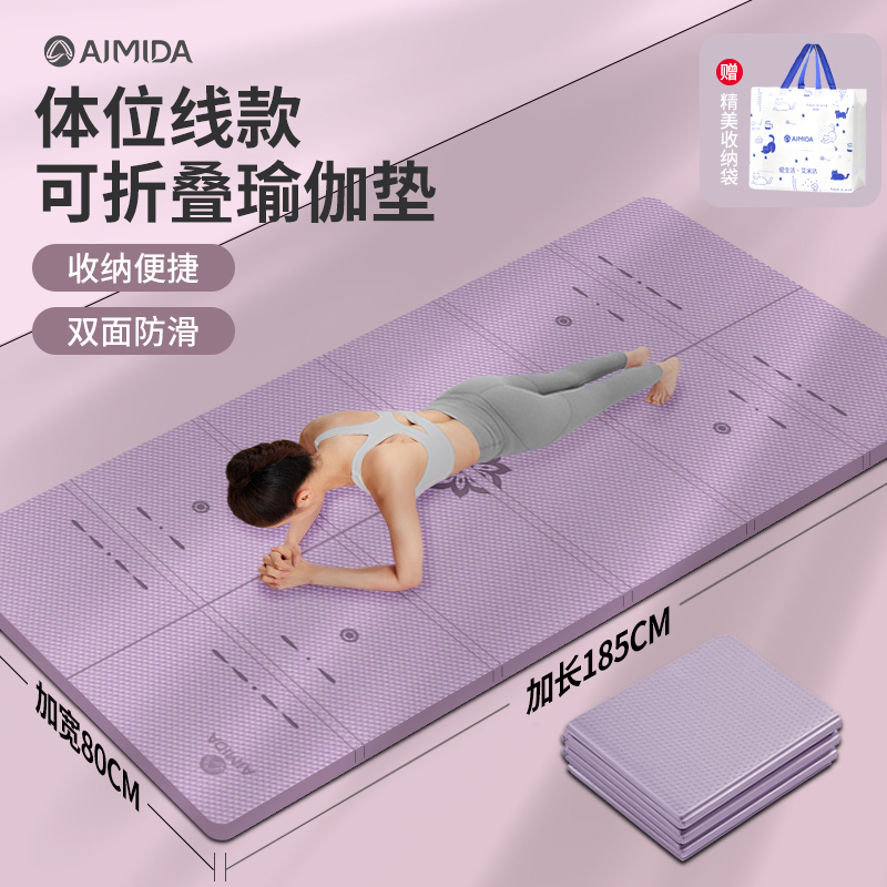 艾米达可折叠瑜伽垫便携加宽加厚加长防滑静音运动健身家用地垫子