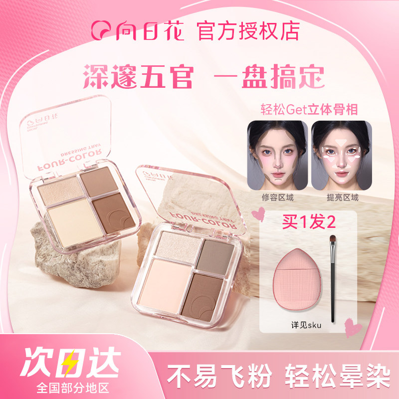 向日花修容盘高光膏粉面部提亮阴影鼻影侧影四色一体女旗舰店正品