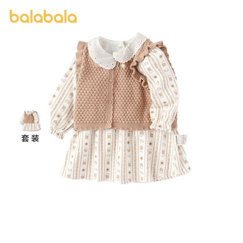 【商场同款】巴拉巴拉宝宝秋装女童长袖套装连衣裙两件套2025新款