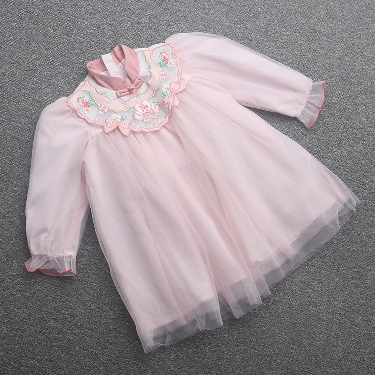 [迪]兰米特卖春秋新款童装女童宝宝连衣裙汉服长袖宽松绣花蓬蓬裙