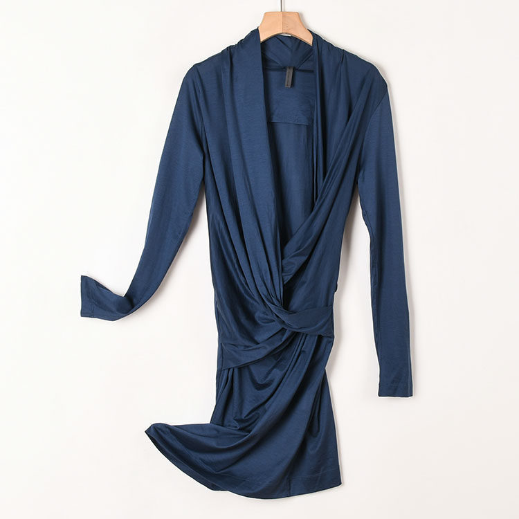 宝蓝色长袖西装连衣裙女高级感气质小众设计风衣外套宴会礼服工装