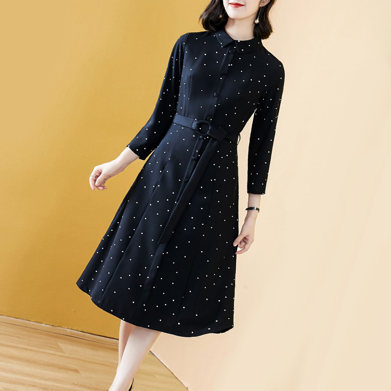 高档品牌连衣裙长袖女正品春秋2025新款波点系带洋气名媛过膝长裙