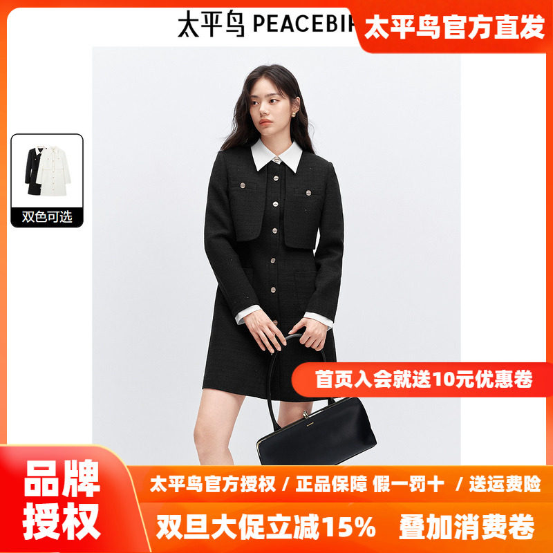 太平鸟女装气质优雅小香风连衣裙2025秋冬新款小众假两件长袖短裙