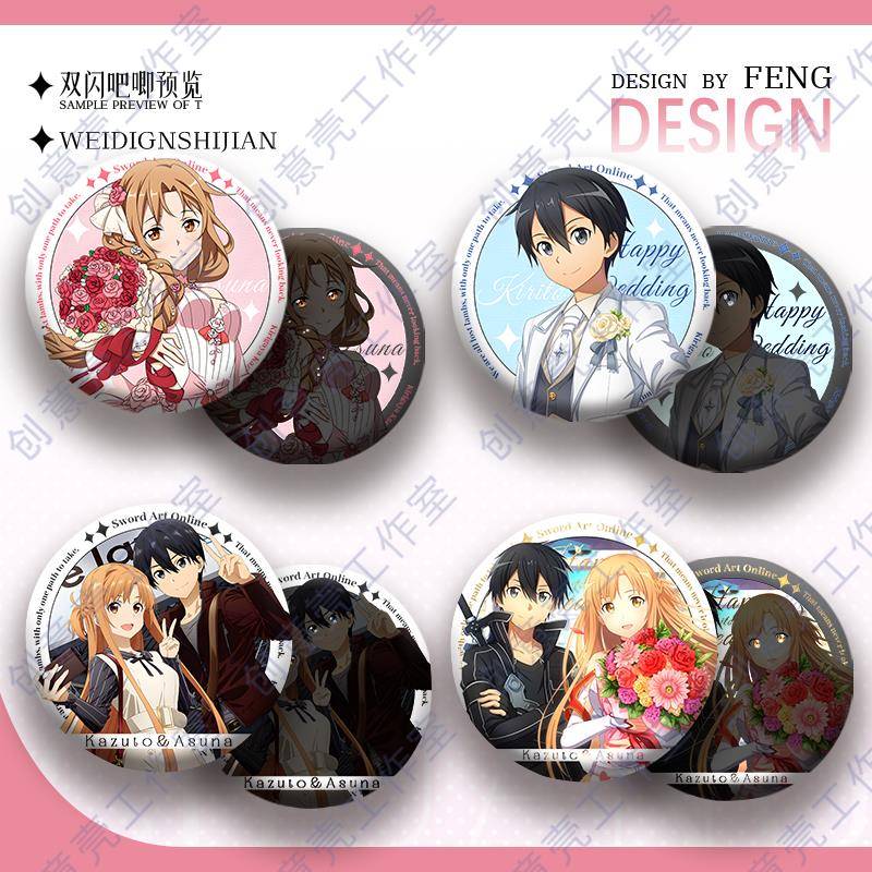 刀剑神域双闪吧唧桐谷和人结城明日奈求婚纪念动漫周边胸章徽章谷