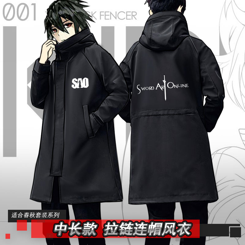 刀剑神域衣服秋冬季中长款风衣SAO连帽外套COS卫衣桐人动漫周边