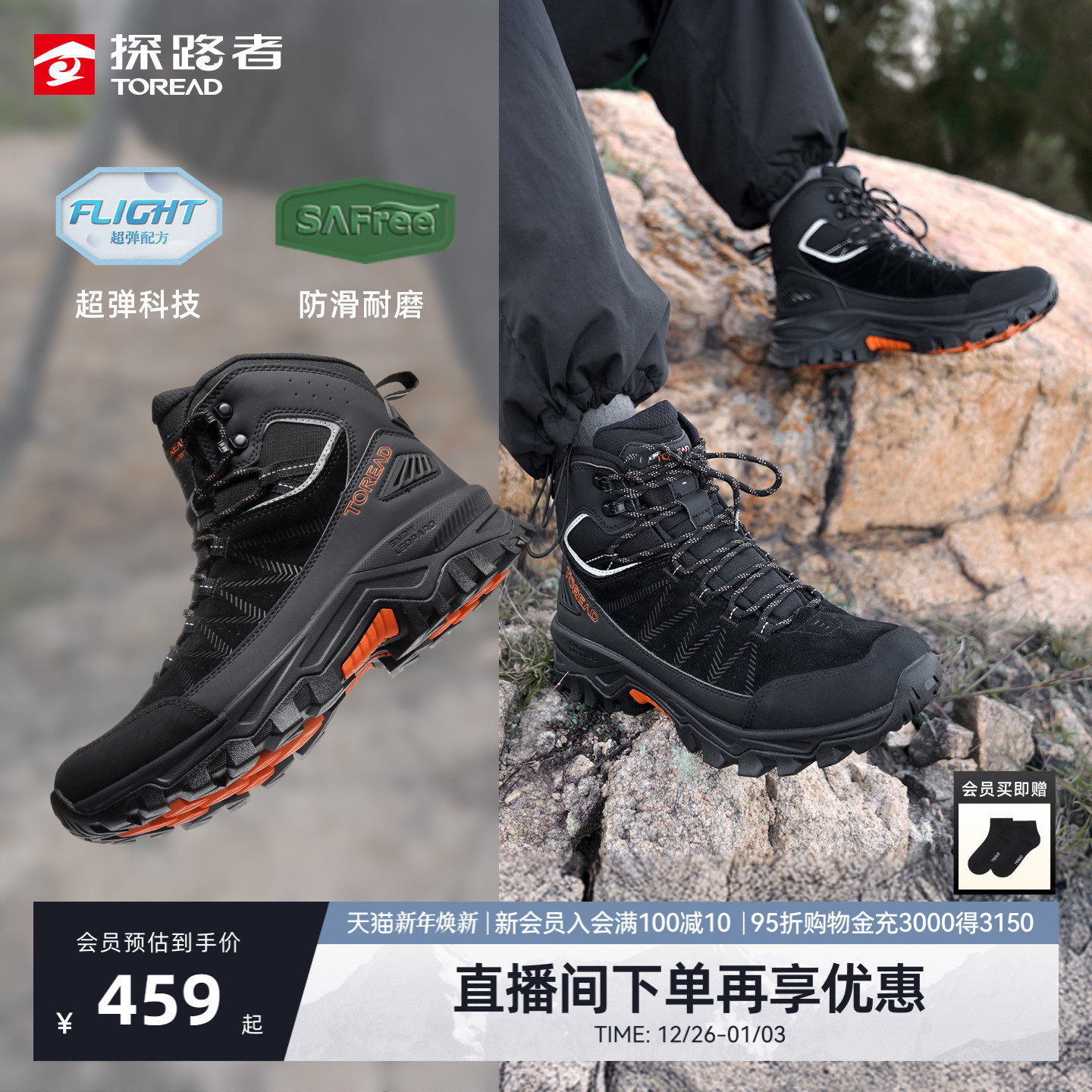 悍途户外中帮登山鞋男靴冬季加绒防滑减震防泼水男士爬山鞋徒步鞋