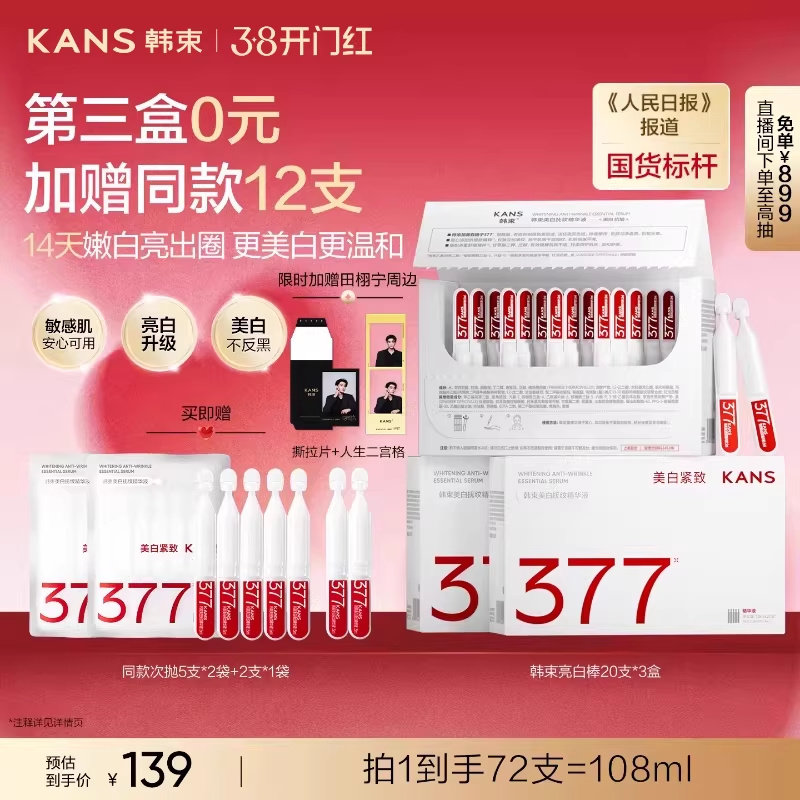 【田栩宁38现货】韩束377亮白棒次抛面部精华液烟酰胺美白淡斑