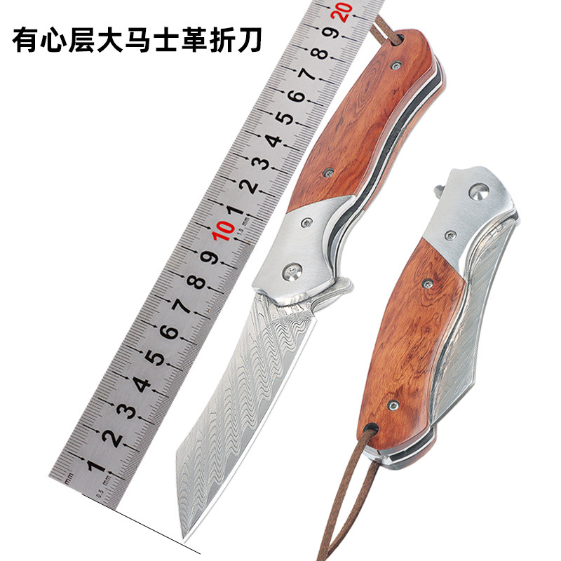 大马士革折叠刀EDC工具酸枝木柄随身防身户外野营刀具高硬度耐磨