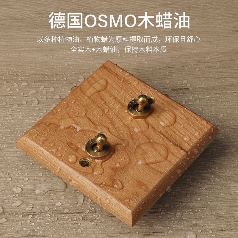 法式奶油风实木复古开关面板黄铜拨杆86型墙壁插座原木色榉木北欧