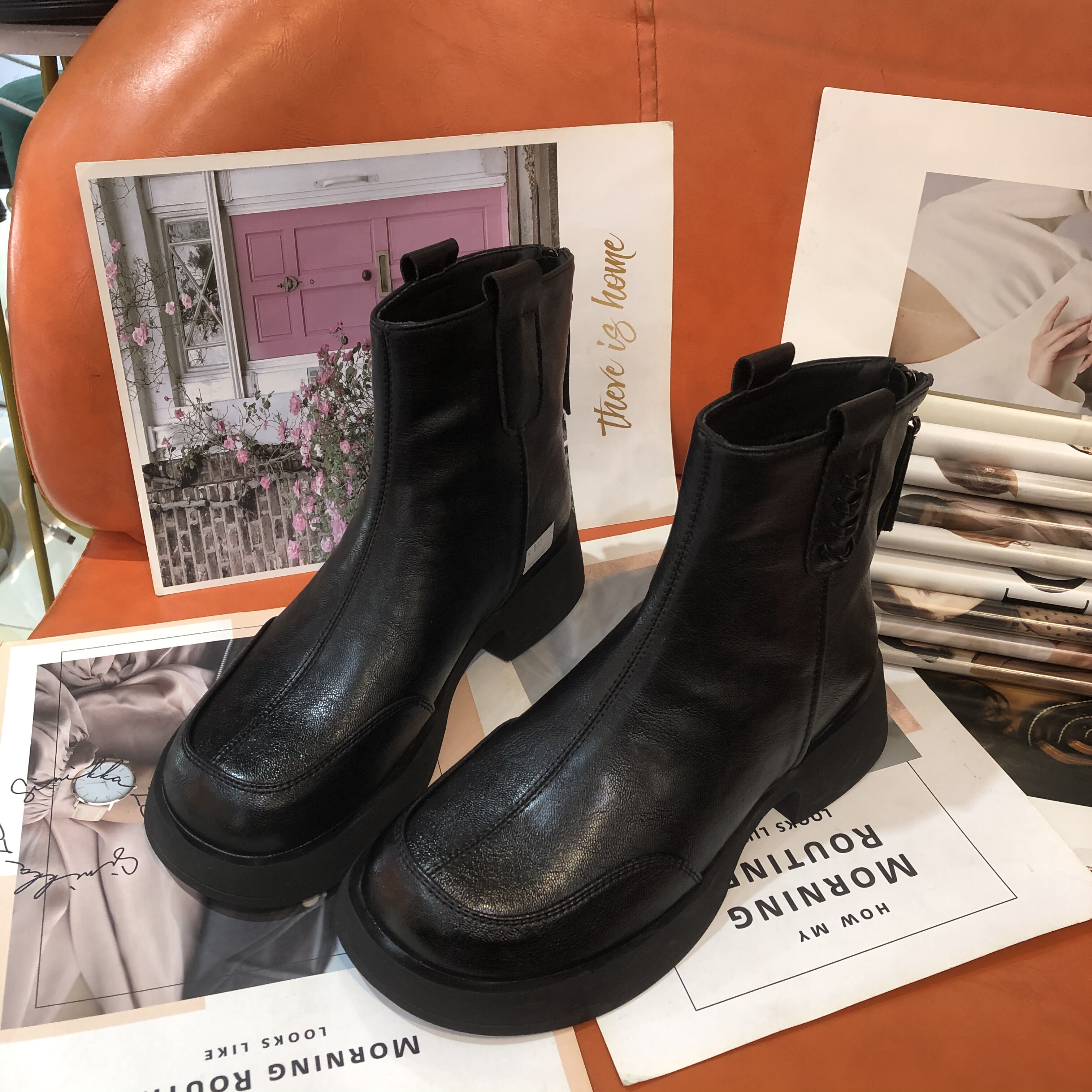 英伦风复古切尔西靴女2025新款时尚厚底短靴后拉链时尚马丁靴潮女