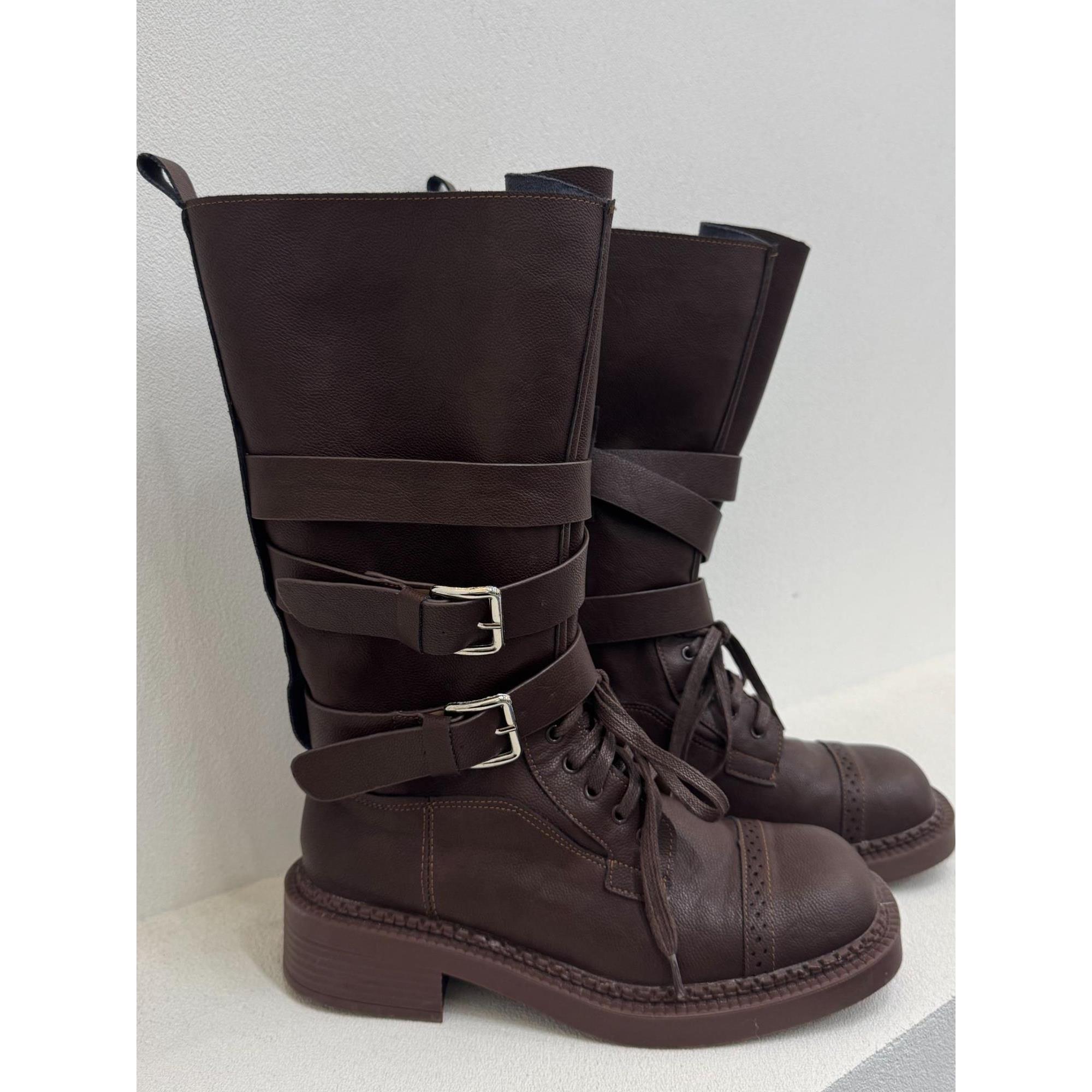 34-37牛皮Zuse专柜 棕马丁靴女英伦风新个性潮女粗跟小跟短靴8837