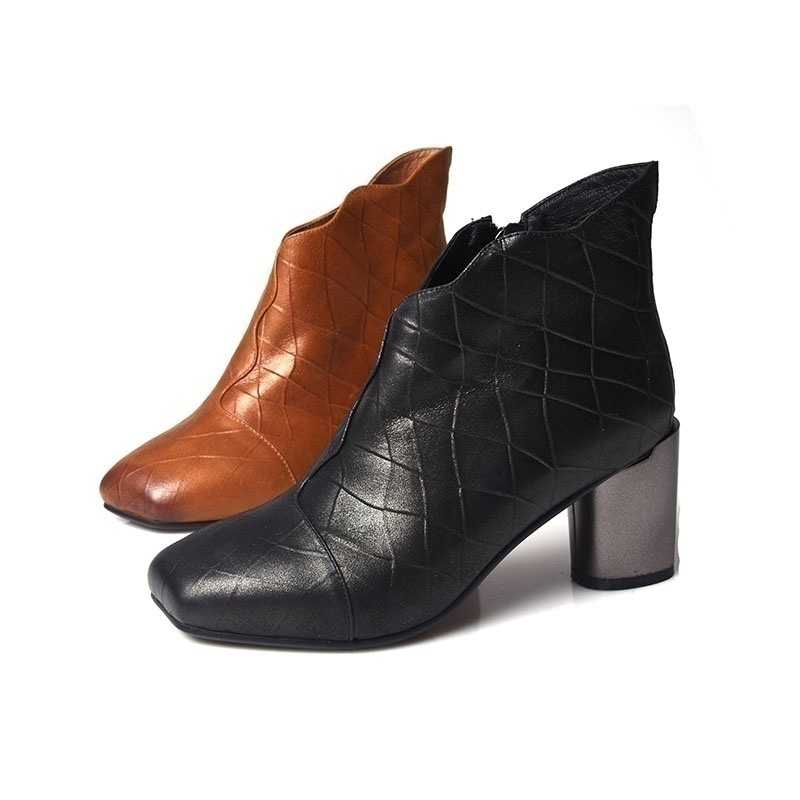 头层牛皮ZUSE 鳄鱼纹马丁靴英伦风 个性潮女粗跟短靴中跟百搭方头