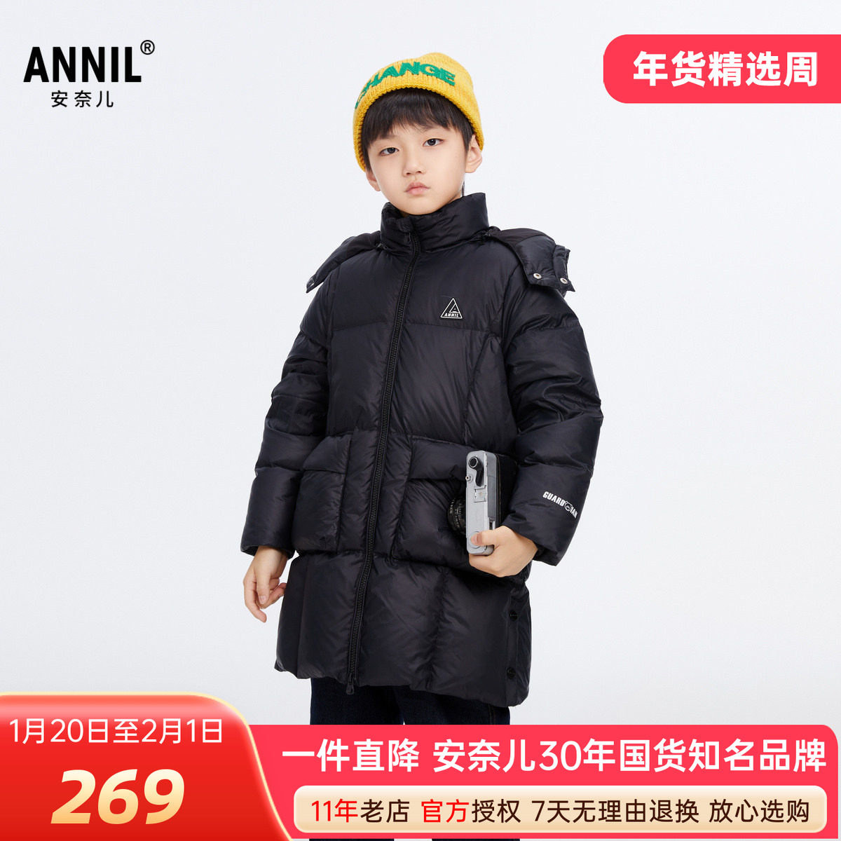 - 男生中长款羽绒服