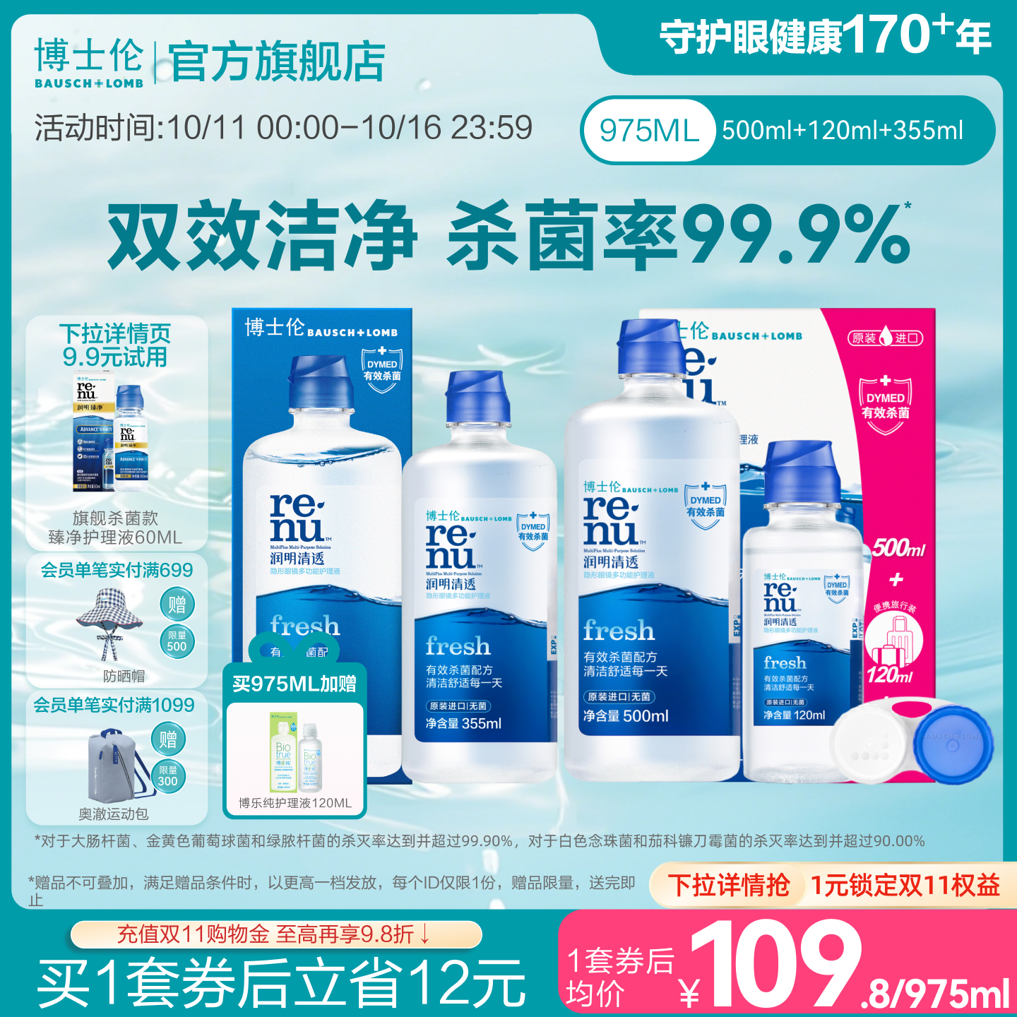 博士伦清透美瞳隐形眼镜护理液瓶355*2+120ml官方正品视客旗舰店