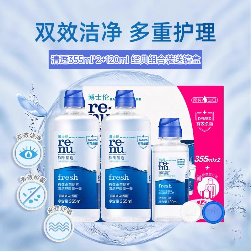 博士伦润明355*2+120ml隐形眼镜护理液大小瓶美瞳旗舰店官网正品