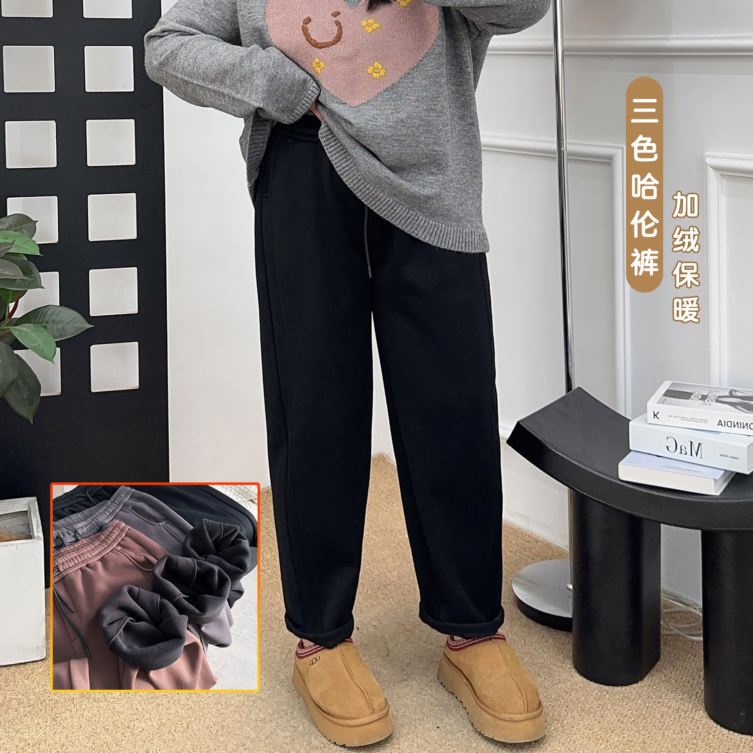 - 加绒休闲卫裤女