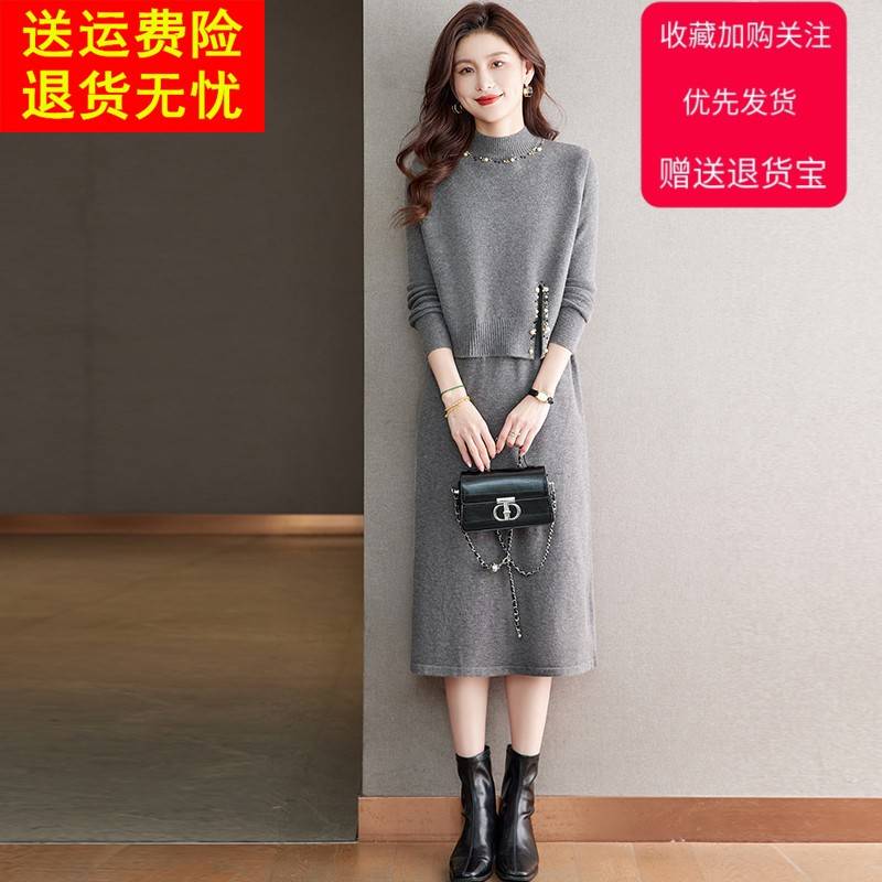 秋冬中长款两件套毛衣裙女秋冬内搭时尚针织连衣裙套装女春秋外穿