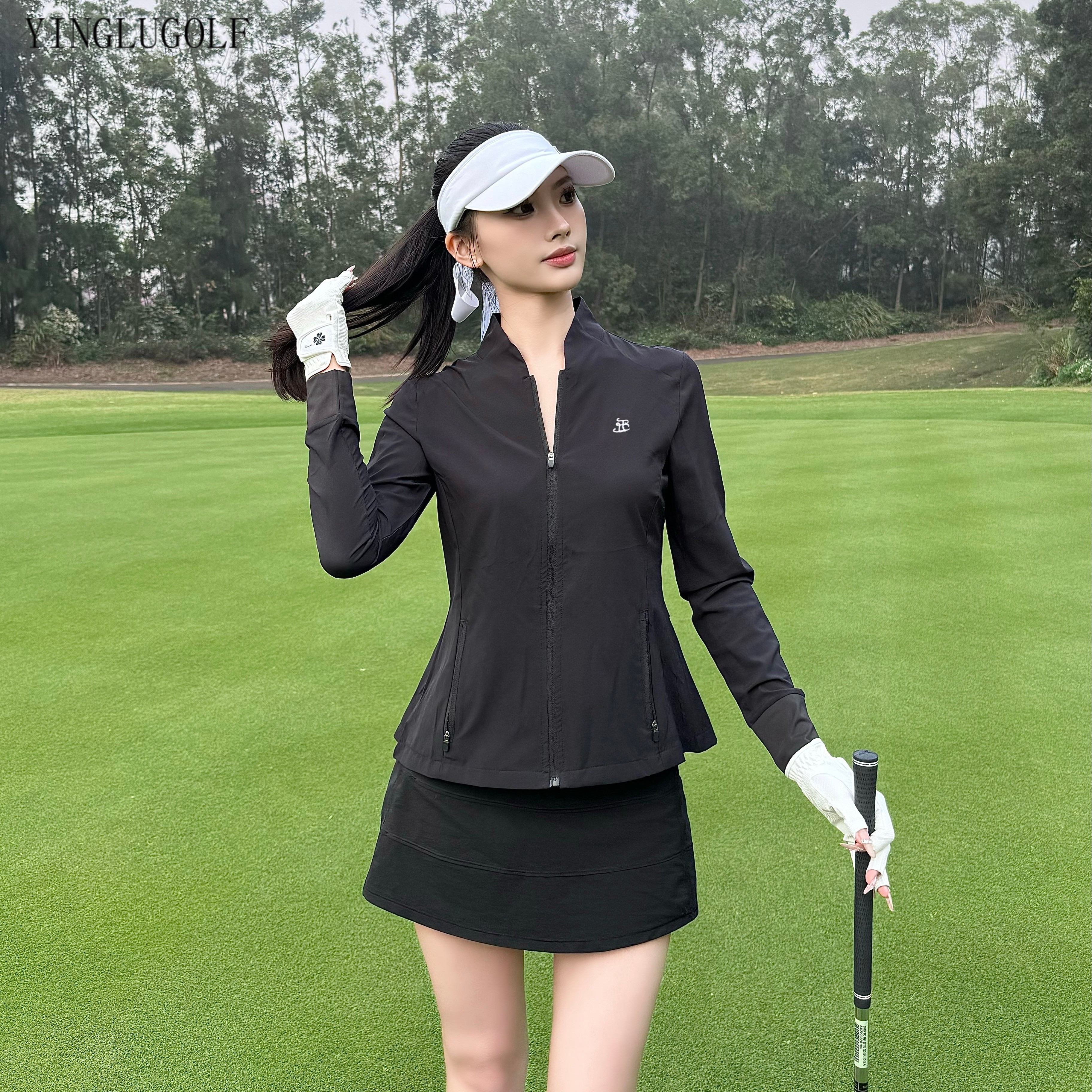 韩国高尔夫女装春秋防晒透气长袖风衣外套修身显瘦运动短裙裤套装