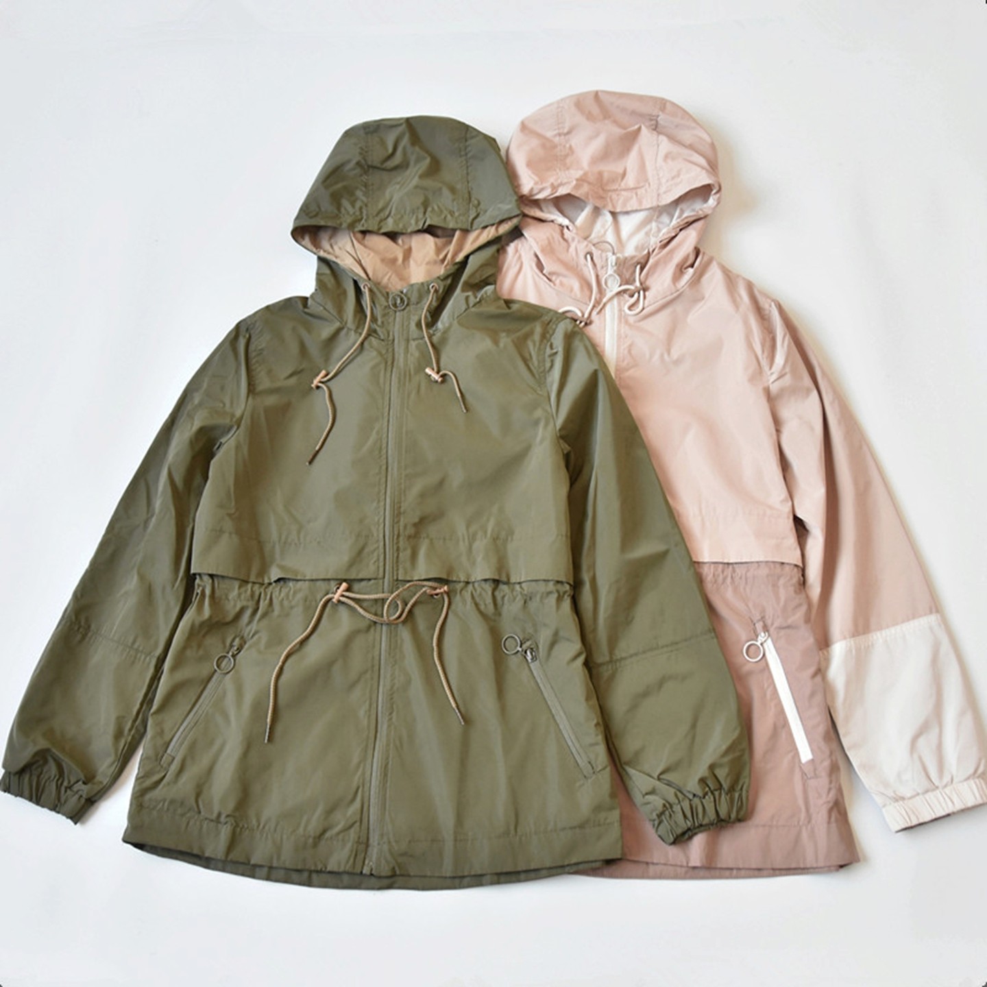 外贸英伦风女士春秋休闲长袖外套 户外运动防风宽松收腰连帽风衣