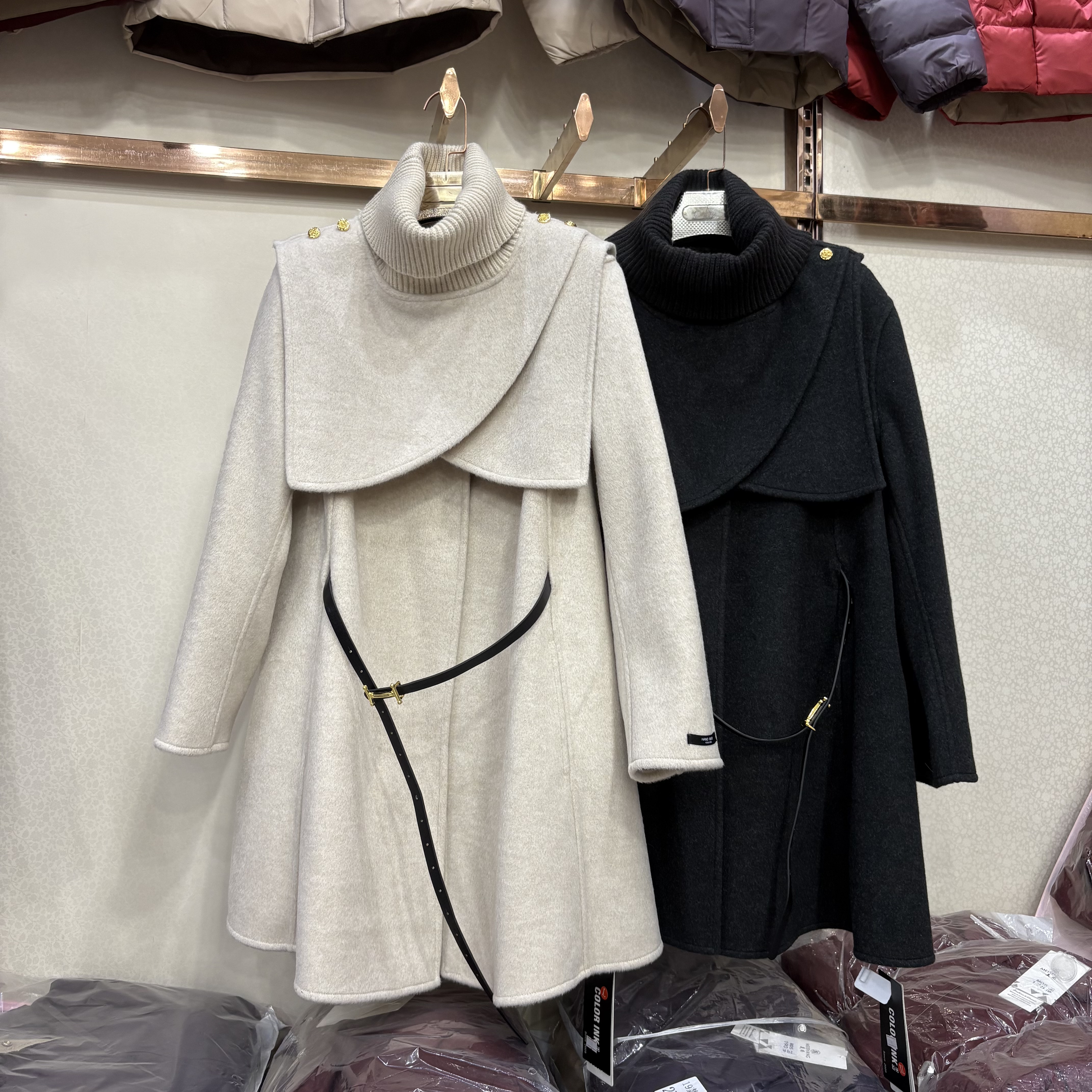 2025冬新款绵羊毛双面呢斗篷大衣女系带收腰中长款高级感气质外套