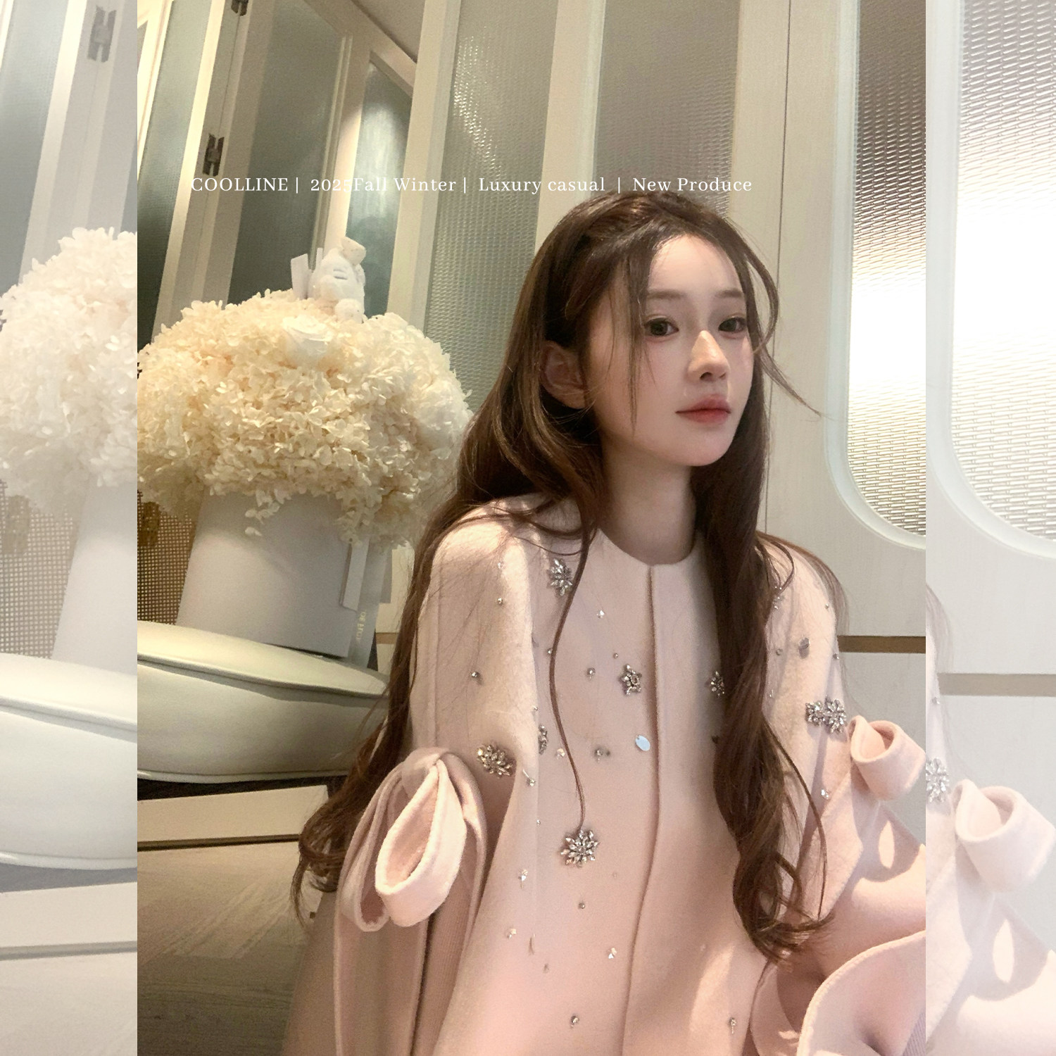 COOLLINE林子熙 繁星 粉色重工千金感斗篷大衣女精致系带外套上衣