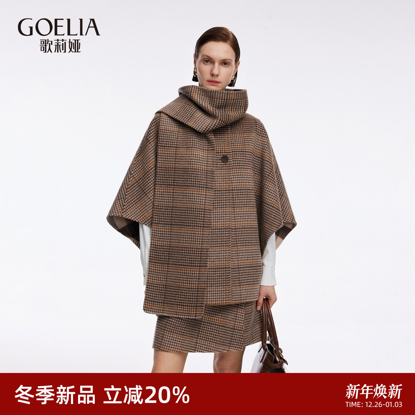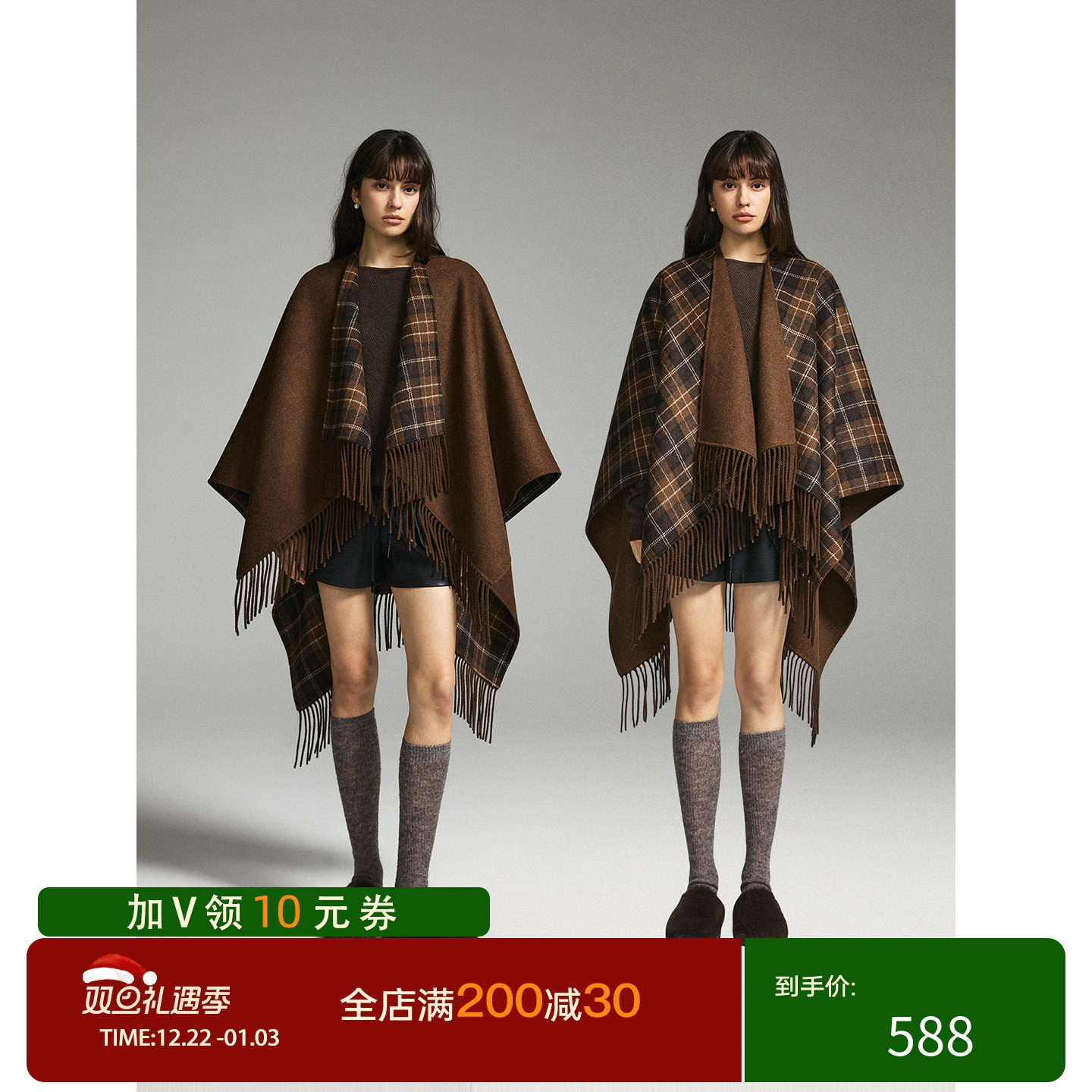 配围巾|歌莉娅两面穿羊毛羊绒斗篷大衣女冬季复古格纹双面呢外套