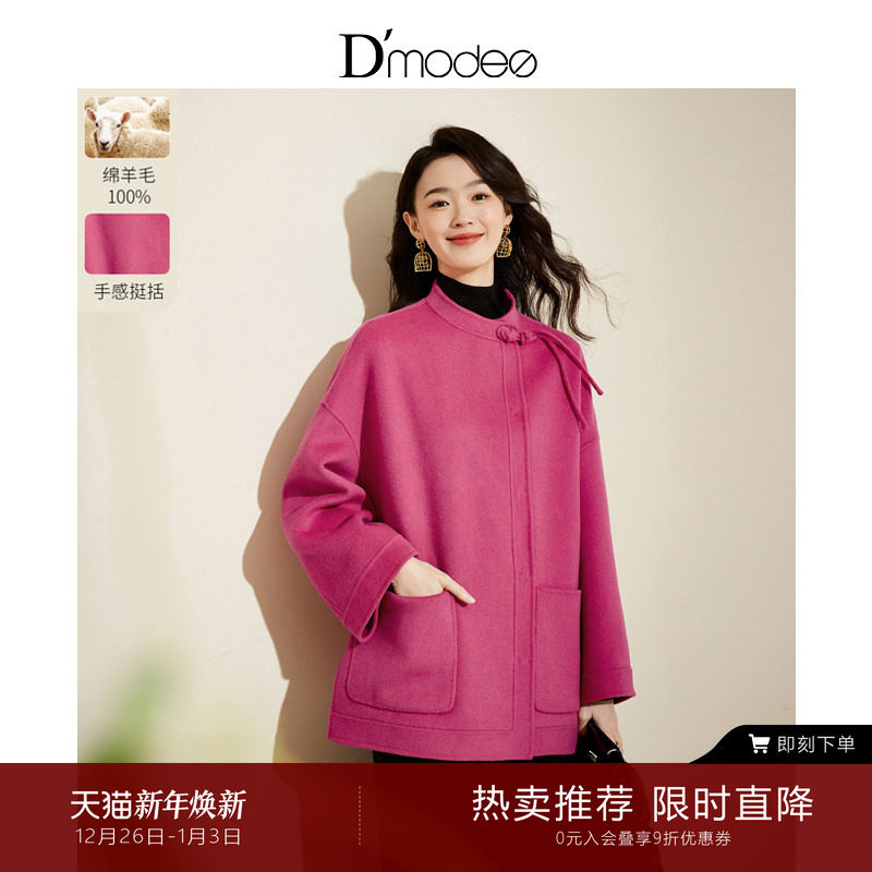DPLAY红色千金感羊毛混纺斗篷大衣女2025冬新款气质毛呢大衣外套