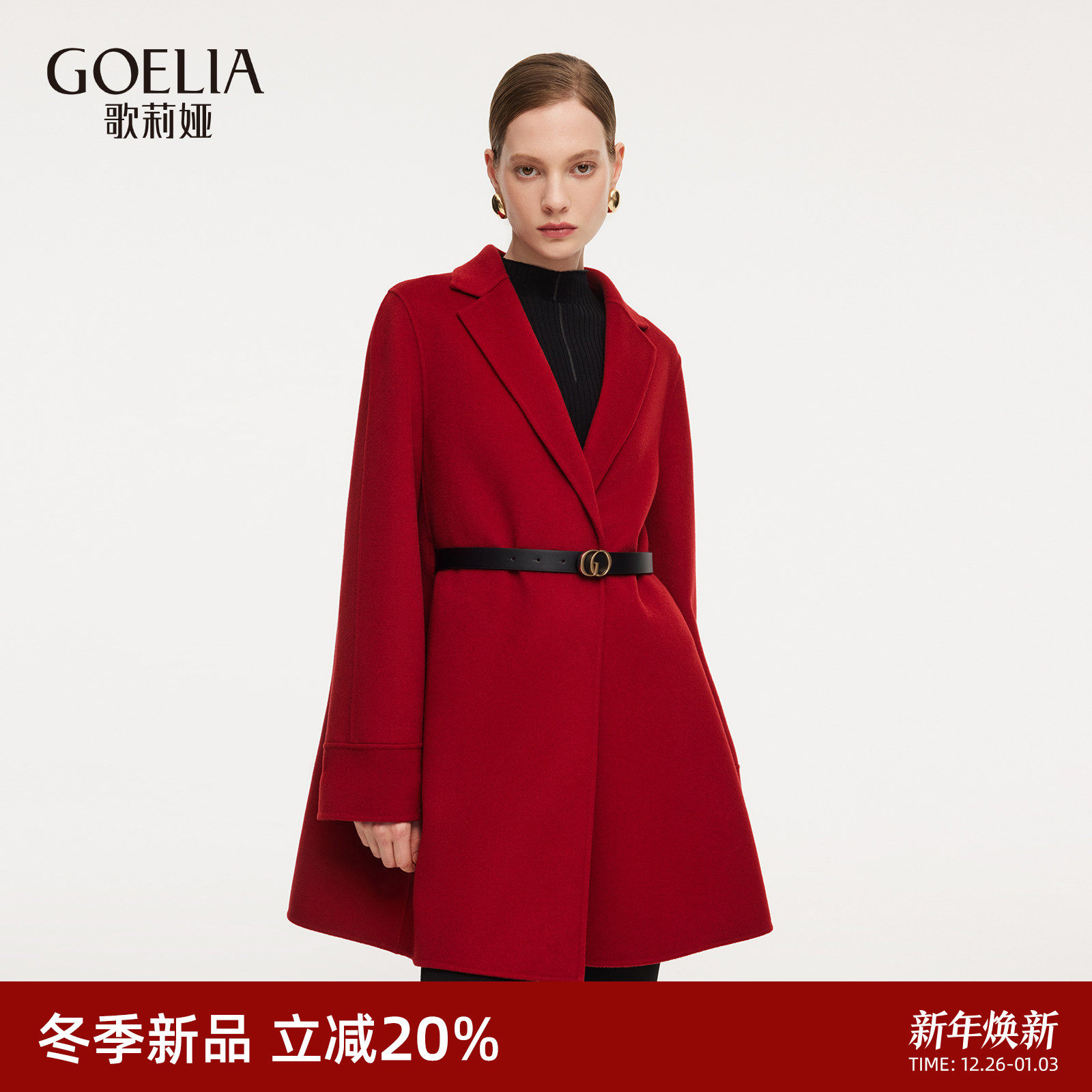 歌莉娅羊毛羊绒红色斗篷大衣女秋冬2025新款本命年穿搭双面呢外套