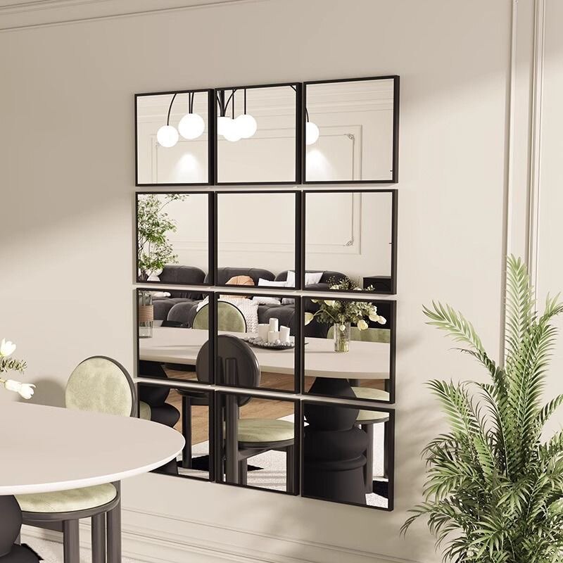 网红实木格子镜壁挂拼接背景墙沙发镜子法式全身镜创意组合装饰镜