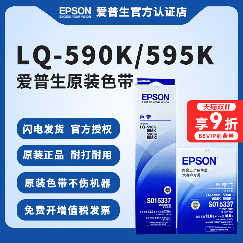 EPSON原装爱普生590K色带 S015337 LQ-590K色带架 LQ-595K 590KII 595KII FX890 色带框芯条针式打印机色带