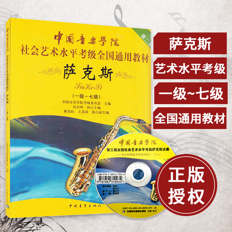 正版中国音乐学院萨克斯考级教材1-7级 中国音乐学院社会艺术水平考级全国通用教材萨克斯考级教程书籍第2套