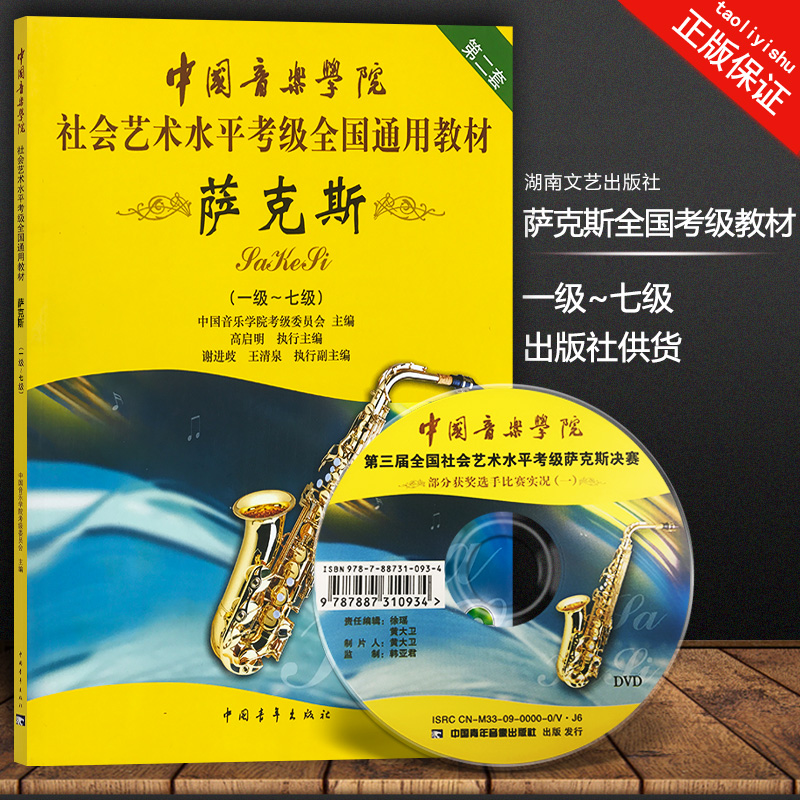 正版萨克斯考级1-7级 中国音乐学院社会艺术水平考级萨克斯1-7级(附DVD) 全国通用教材第二套 萨克斯考级书 中国青年出版社