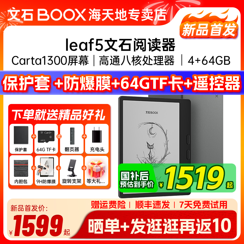 【papi酱同款】文石BOOX Leaf5高速电子阅读器墨水屏看书电子书阅览器类纸护眼屏水墨屏电纸书