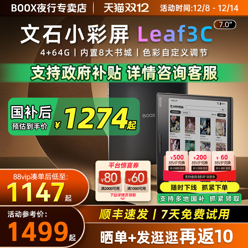 【支持多地15%国补】文石BOOX Leaf3C彩色墨水屏阅读器水墨屏电子书智能电纸书阅览器类纸护眼读书看书水墨屏