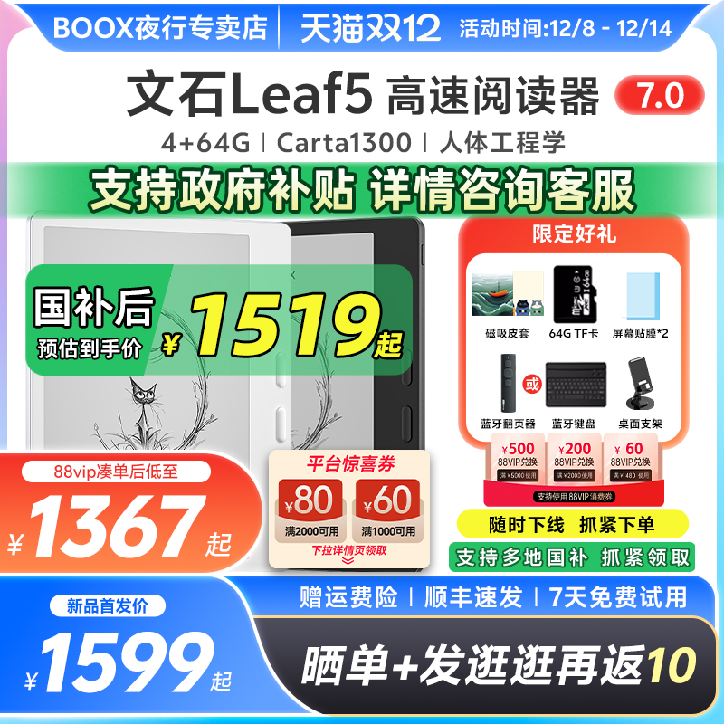 【支持国补 送磁吸皮套】文石BOOX Leaf5高速阅读器墨水屏电纸书智能电子书阅览器类纸护眼水墨屏听读书漫画