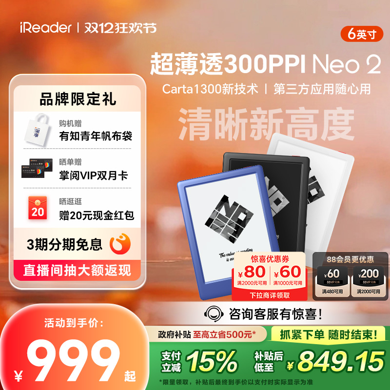 【支持多地国补】掌阅iReader Neo2电子书墨水屏阅读器6英寸智能电纸书阅览器水墨屏学生护眼小说漫画电子纸