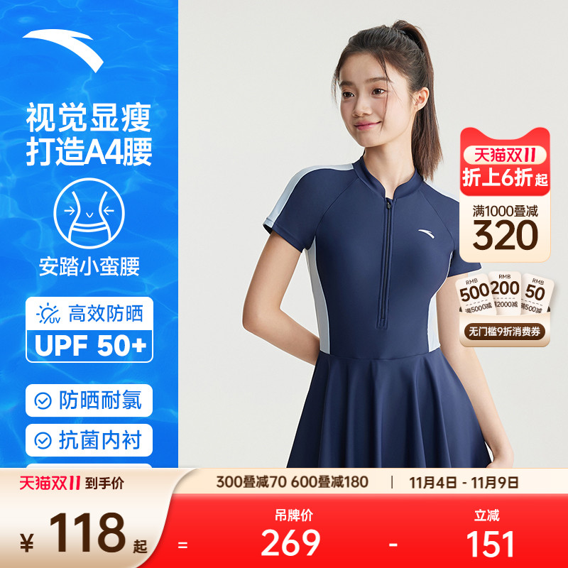 安踏泳衣女款高级感保守显瘦游泳馆训练专用女士连体平角温泉泳装