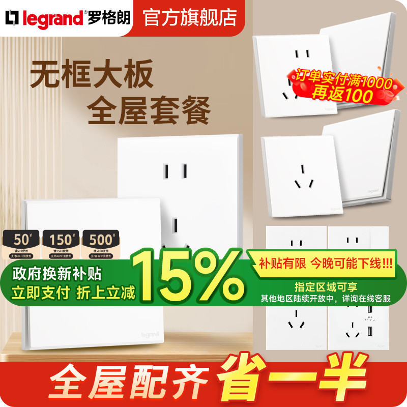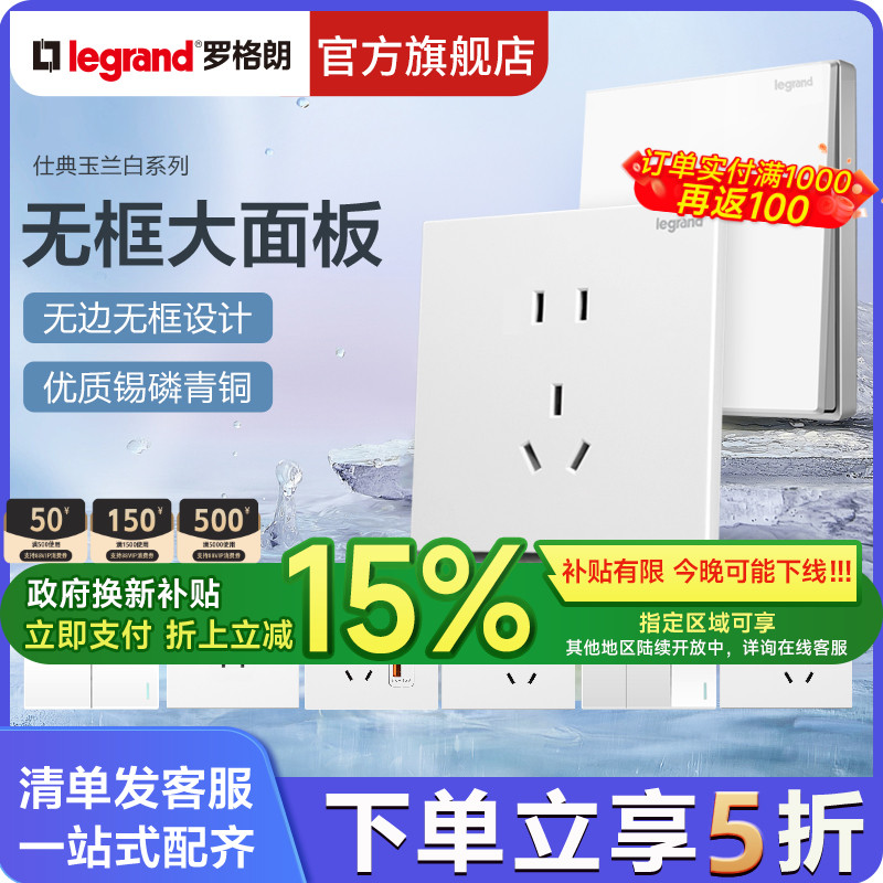 罗格朗官方旗舰店仕典白开关插座面板一开五孔带开关家用暗装86型