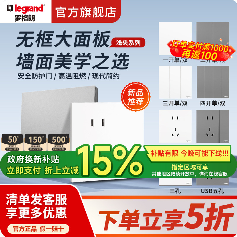 罗格朗开关插座面板仕典Plus白内嵌式一开五孔16三孔usb十大品牌
