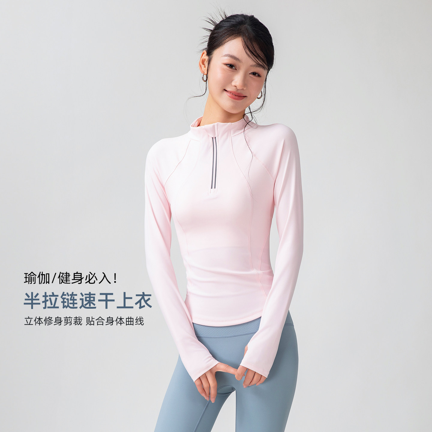健身女孩速干瑜伽服修身显瘦透气运动上衣圆领弹力普拉提跑步长袖