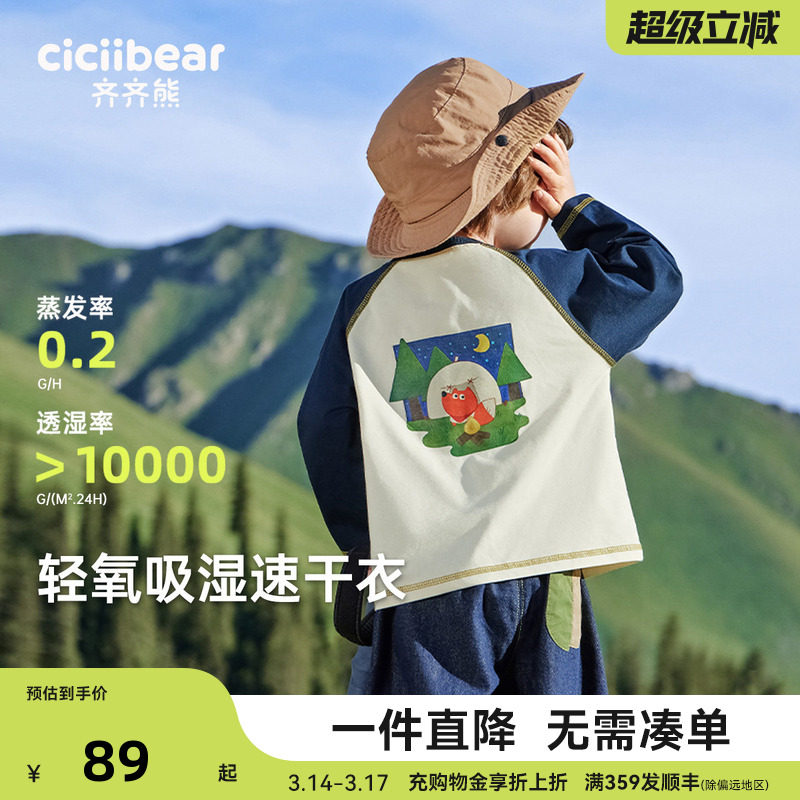 [3S速干衣]齐齐熊男童t恤长袖春装新宝宝印花上衣儿童运动衣童装