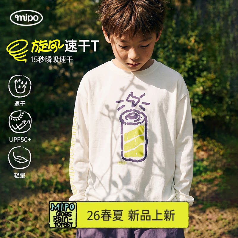 【旋风速干】mipo春季儿童t恤长袖防晒男女童户外运动宽松上衣白t