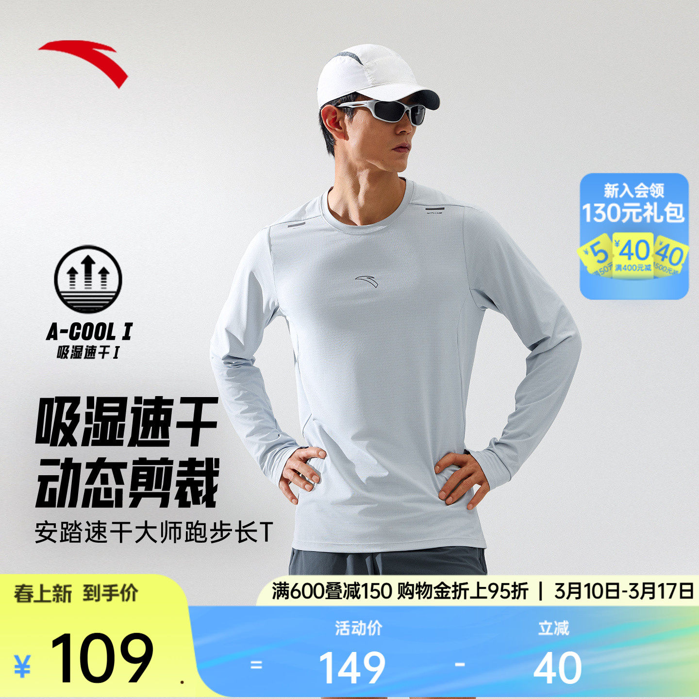 安踏速干大师丨长袖t恤男春季新款跑步运动上衣压缩衣健身训练服