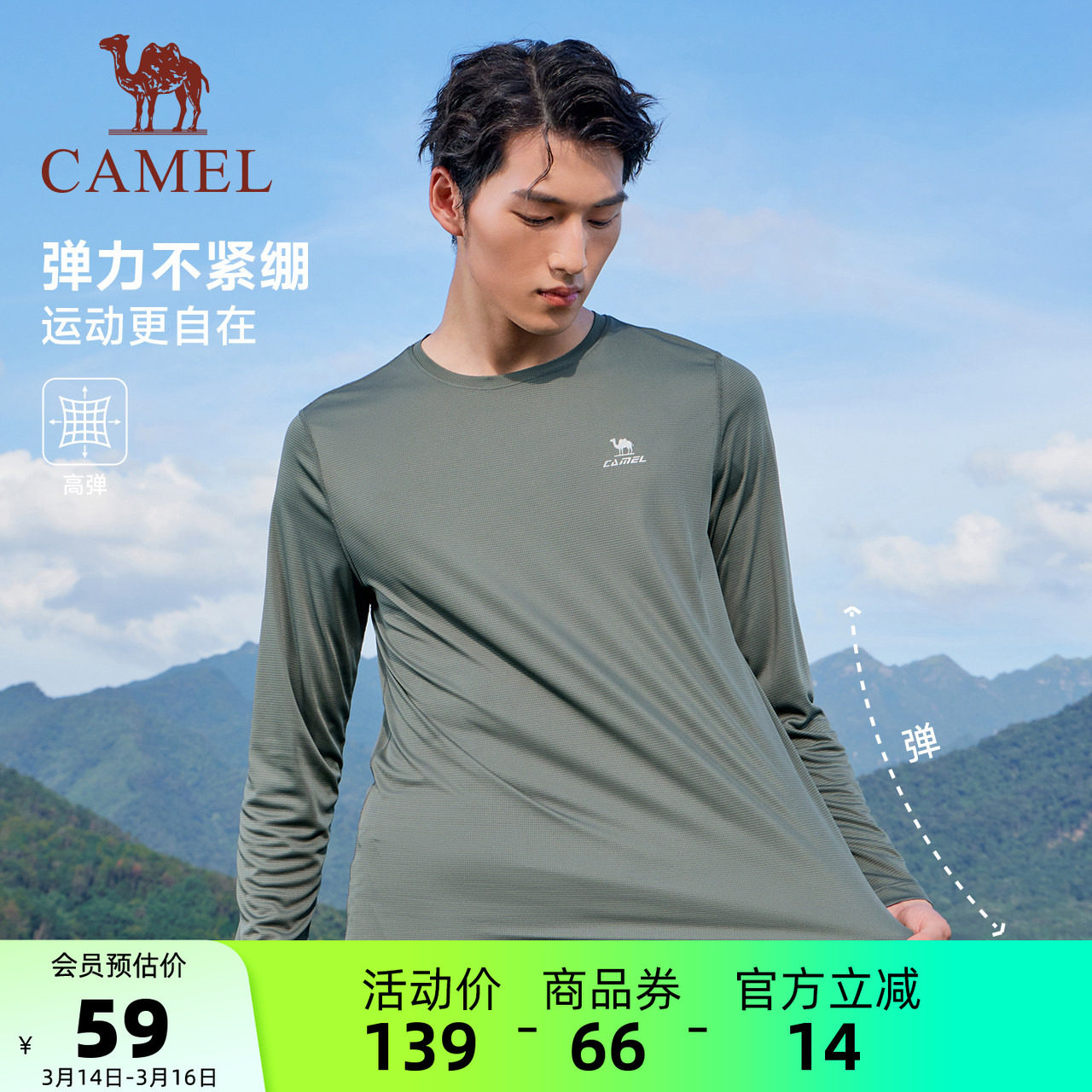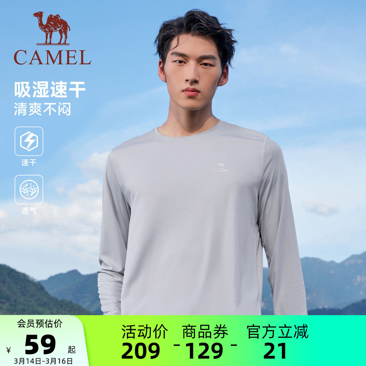 骆驼运动速干长袖T恤女2026夏季健身户外运动轻薄徒步内搭上衣男