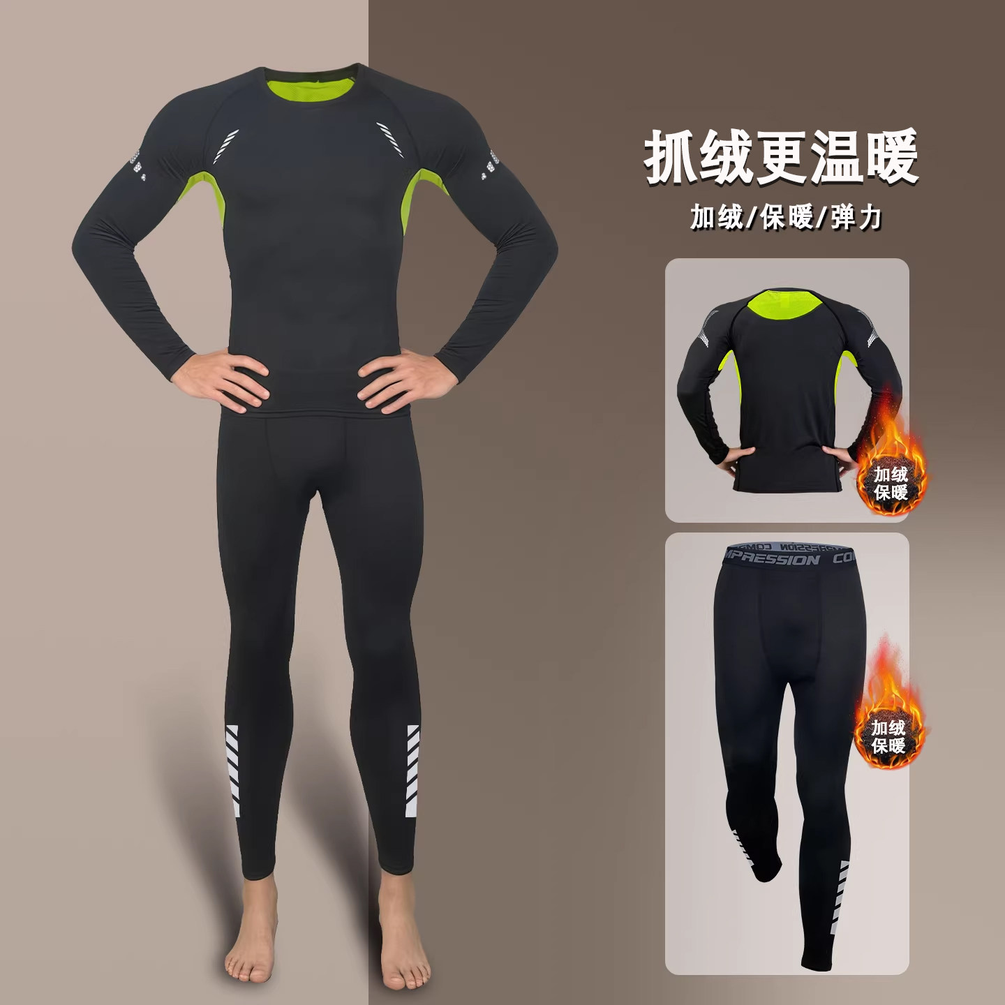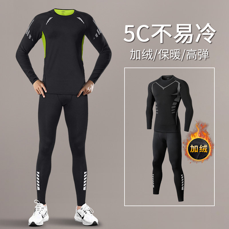 紧身衣男士冬季加绒速干衣长袖运动套装加绒保暖内衣秋冬跑步上衣