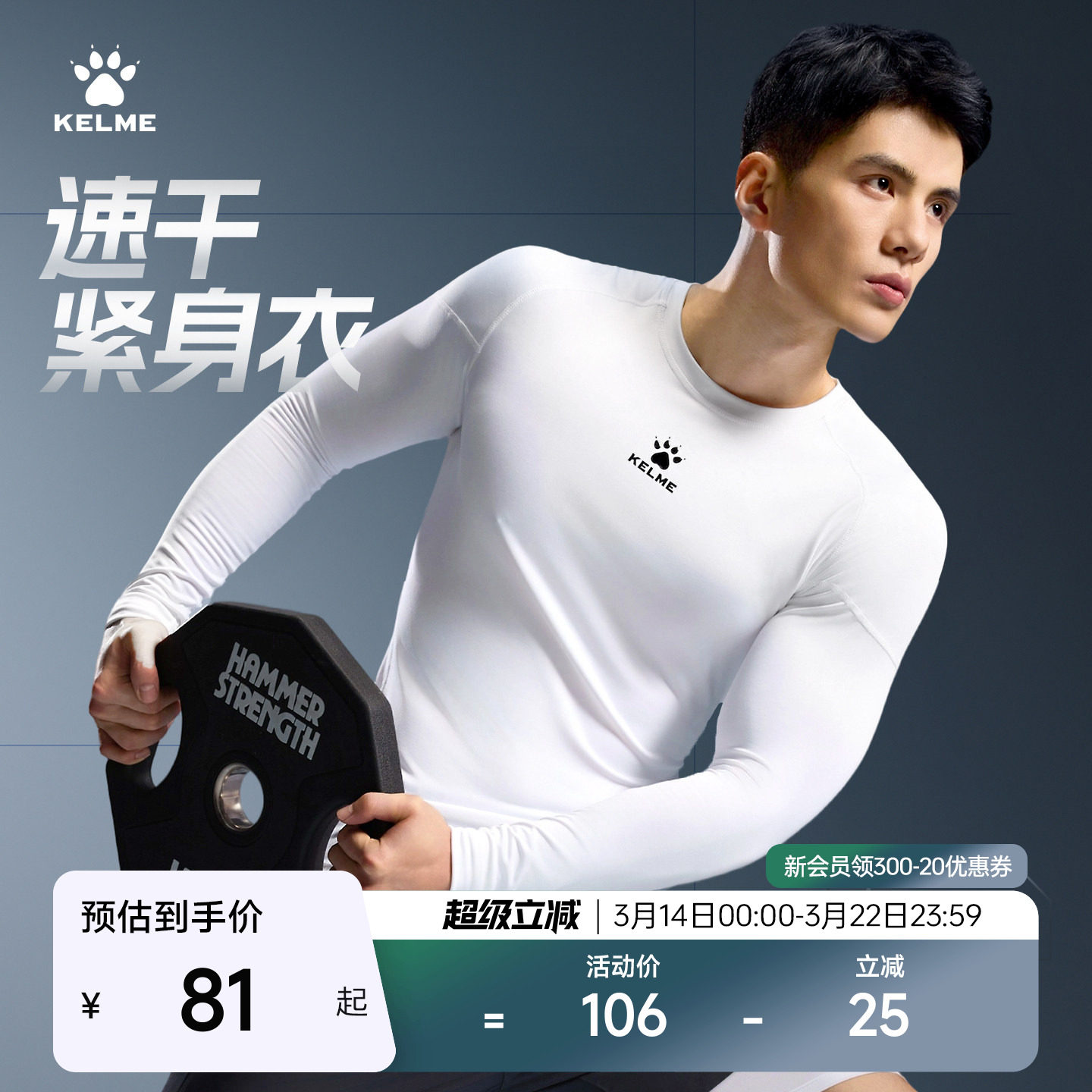 回力速干衣长袖男运动T恤春秋打底衫跑步健身防晒登山训练服上衣