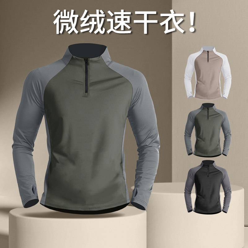 速干衣长袖运动t恤男冬季跑步上衣微绒健身服新款半拉链户外训练