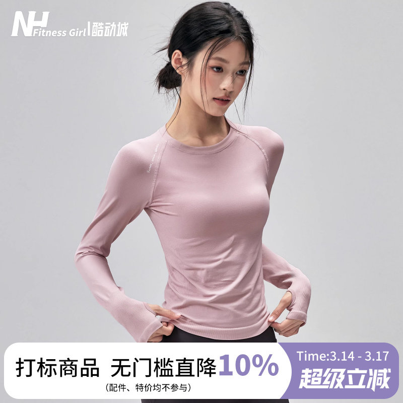 健身女孩速干瑜伽服长袖修身高弹普拉提训练无缝跑步运动上衣薄款