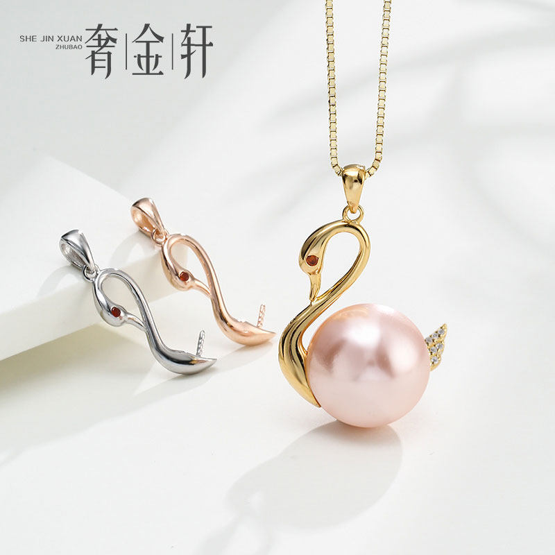 925纯银巴洛克吊坠大天鹅头双面粘扣异形珍珠吊坠扣头空托diy配件
